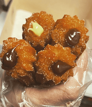 Crisp on the outside, soft inside, served with caramel or chocolate dips.
